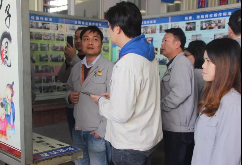 參觀團(tuán)學(xué)習(xí)永堅員工培訓(xùn)看板