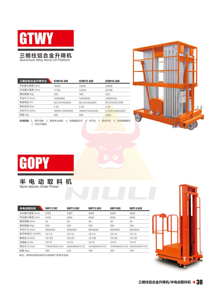 平臺最大高度(mm) 2720 3300 3500 4000 4500