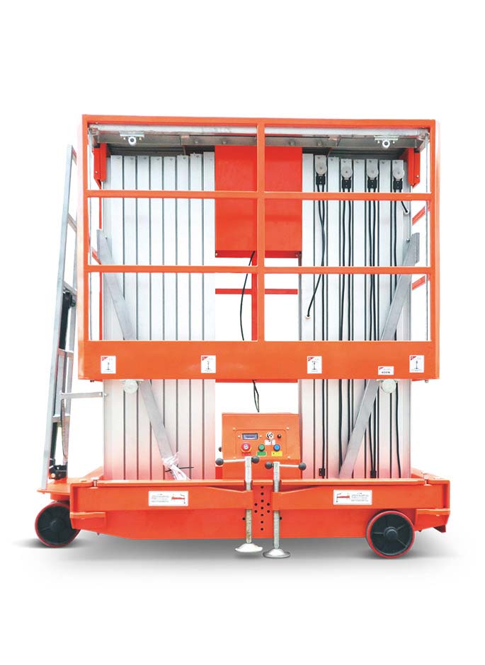 采用高強(qiáng)度航空鋁合金金桅桿設(shè)計(jì),結(jié)構(gòu)緊湊,機(jī)身設(shè)計(jì)輕巧,機(jī)身底座設(shè)有活動(dòng)輔助輪,提供轉(zhuǎn)彎的良好性能,適合各工商業(yè)用途,如建筑安裝,工廠維修、保養(yǎng),物業(yè)管理,展覽搭建,酒店設(shè)備維護(hù)、清潔,廣告安裝懸掛等。