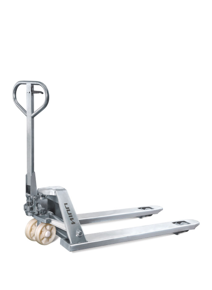 除了輪子和密封件以外所有零部件均由不銹鋼制作,如油缸、車架、手柄、推桿、軸承、插銷等;具有很強的抗腐蝕能力,適用于冷庫及潔凈度、抗腐蝕性要求比較高的場所,如肉類加工、奶制品加工、食品加工、 水產(chǎn)品加工等行業(yè)。