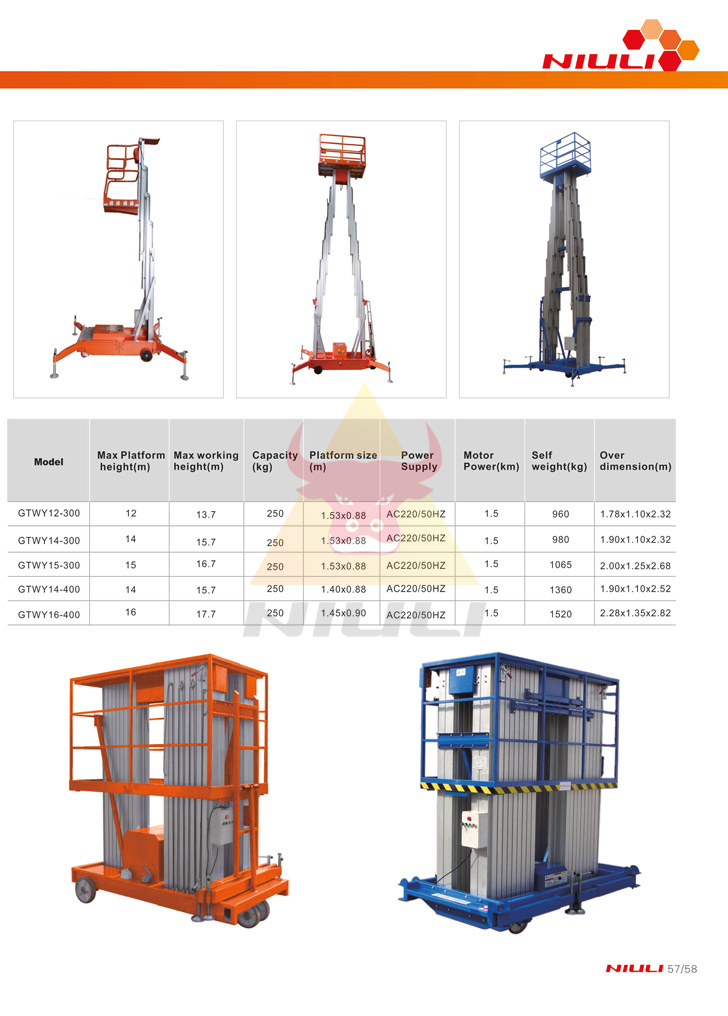 lift platform uses mast column to support the working platform.it is designed for earial works.