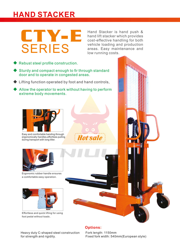 Hand Stacker is hand push & hand lift stacker which provides cost-effective handling for both vehicle loading and production areas. Easy maintenance and low running costs.